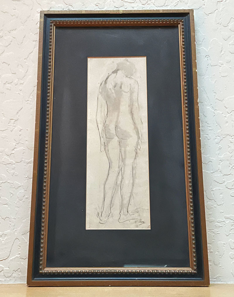 And my latest freebies all come from dear neighbors including this framed nude (ink and watercolor). I find her simplicity absolutely captivating. When I researched the signature “R. Burn” I learned that this was painted by Rodney Joseph Burn (1899-1984), an English artist known for landscapes, seascapes, portraits and nudes. Some of his work is in museums, including the Tate in London.