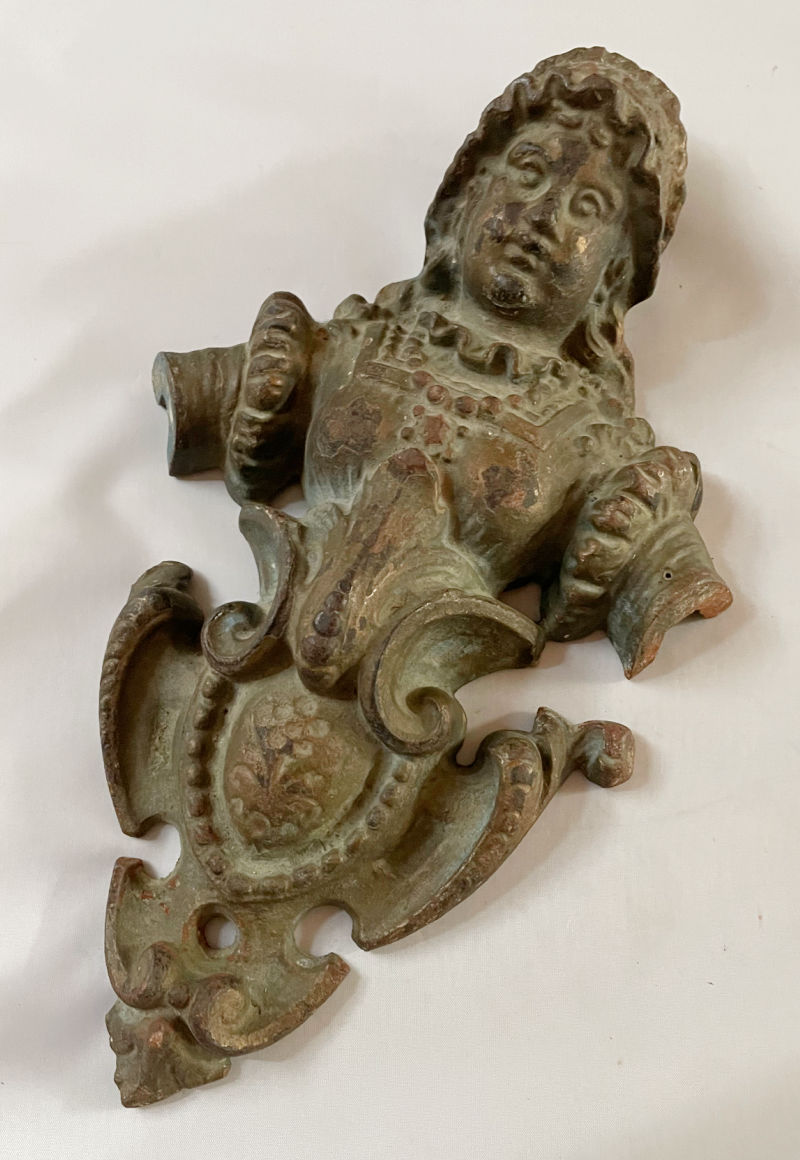 Eventually I did buy a couple of things. One of my favorite sellers had this vintage brass/metal and carnelian tribal choker ($10) and I know someone will enjoy this. (Listed for $48.) I didn’t negotiate because I’ve gotten great stuff from her over the years at fair prices. The cast iron lady piece from a different seller was a mystery. Obviously missing part of her arms and old, very old. The seller wanted $25, I offered $20 which was my top dollar and perhaps still too much! He accepted…I think delighted that someone would actually buy it!!
