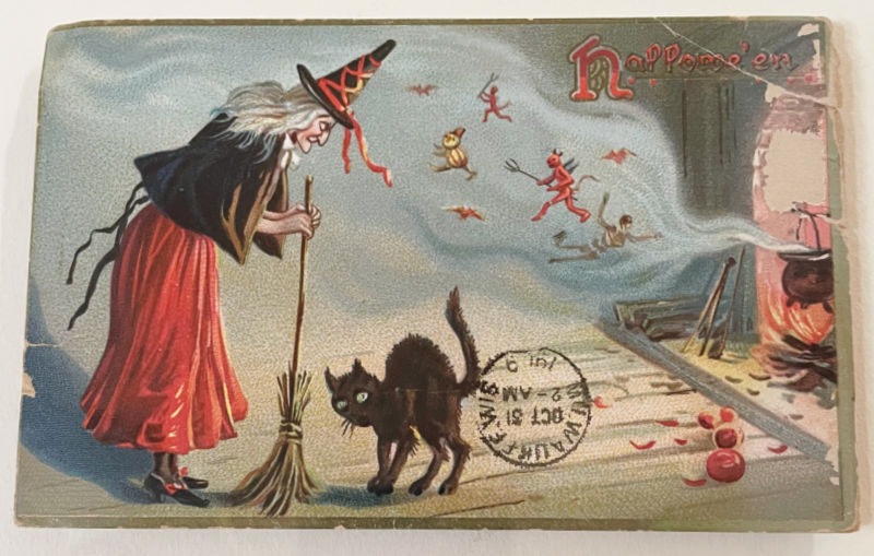 On the find side of things I’m keeping to my low-buy strategy, but I still go looking. I found this framed antique Tuck’s Halloween postcard at my neighborhood thrift store the other day and I was yes, please…even with the oddly place postmark! I don’t know much about old postcards, but I do know that antique Halloween ones are some of the most valuable. (Listed for $58.)