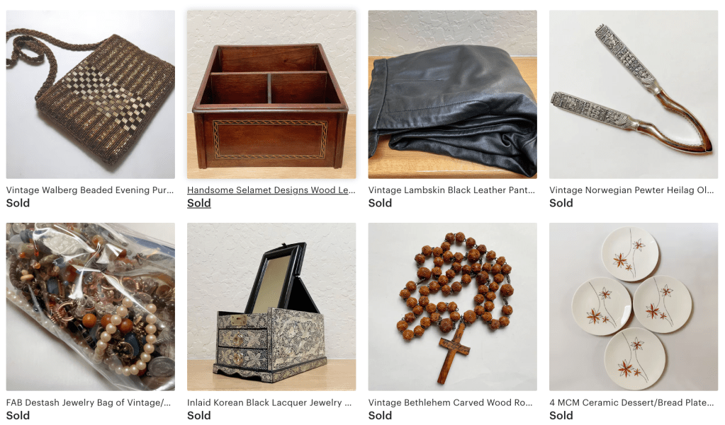 I’ll be frank, both platforms have been a bust for me. Here’s the latest story–I have two green onyx wine goblets listed for a modest $10, someone messaged me and asked if I’d take $5. Geez Louise! That’s not even worth my time and trouble to make arrangements and drive to meet up with someone. In the end I’ll likely just re-donate them.