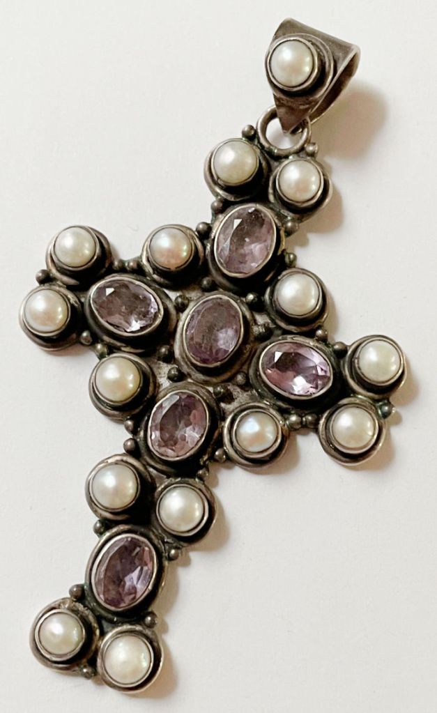 It started innocently enough over two decades ago when I saw this large sterling silver, amethyst and pearl cross in a catalog. This was before the days of internet shopping when many of us delighted in those glossy catalogs we received in the mail. To place an order we called the company with our credit card in hand or mailed a check with an order form to the company. It all feels a bit quaint now.