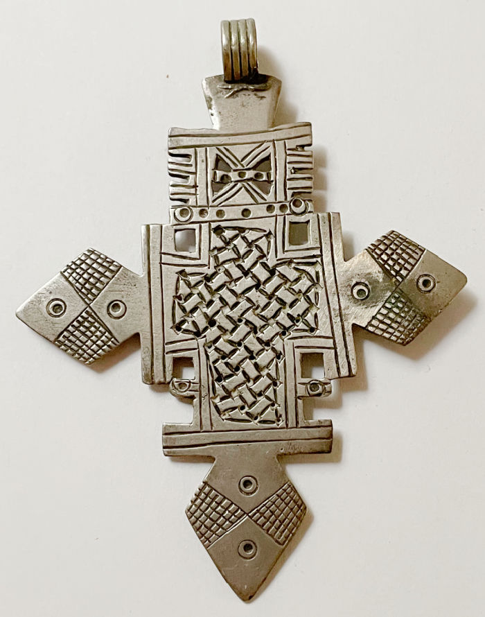 I am enchanted by the primitive design of these hand-crafted crosses. The older ones were made from 18th century Austrian Maria Theresa Thaler coins (.833 silver) which was, strangely, a preferred form of currency in Ethiopia till 1935.