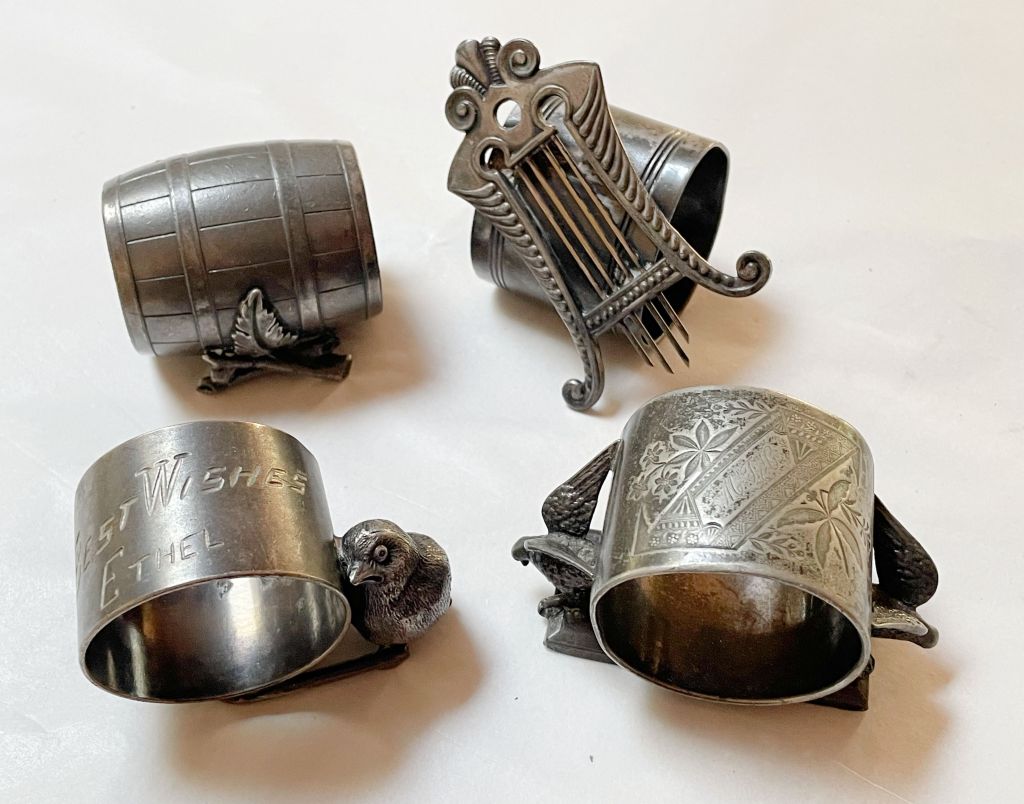I am proud of myself though for listing these Victorian-era silverplated napkin rings. We used these as a family to keep track of our cloth napkins at our kitchen table (I was the “Best Wishes Ethel” ring with the baby chick), but now with our empty nest they rarely get used. I am not keen on getting rid of them, but it seems silly to keep them as they were literally just jumbled up in a drawer.
