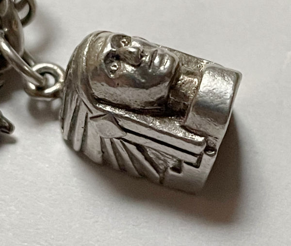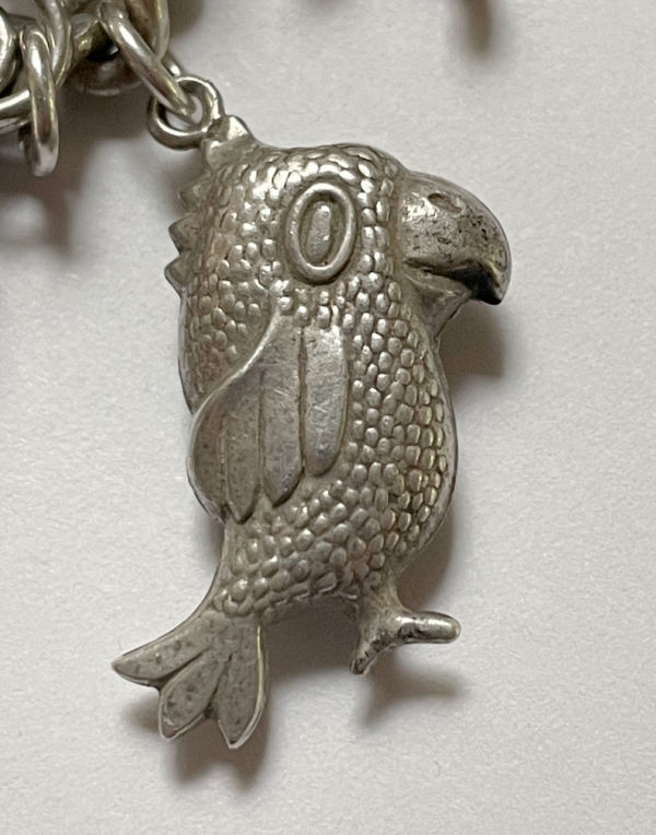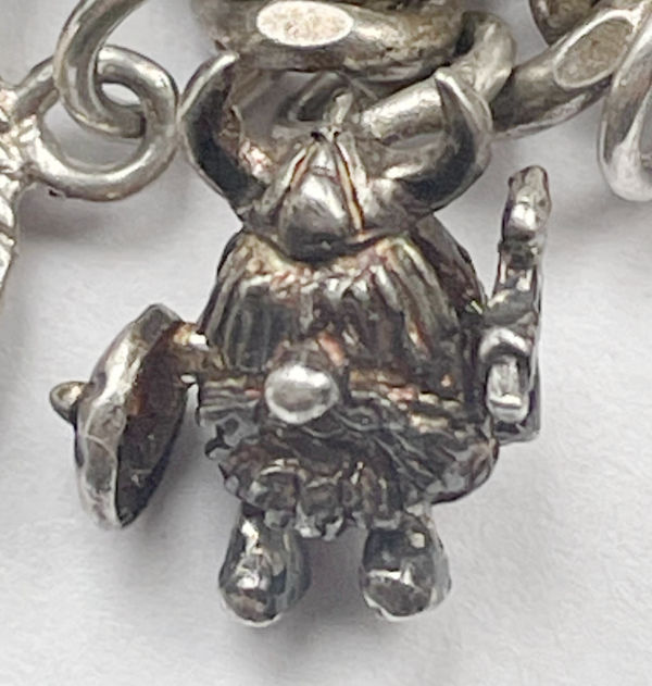 This chunky Indian chief is fantastic (I list him for $45) and I liked the looks of this large puffy parrot charm which I’ll list for $35. The tiny movable Viking dude is a bit of fun I’ll also list for $35.