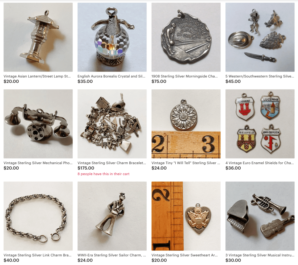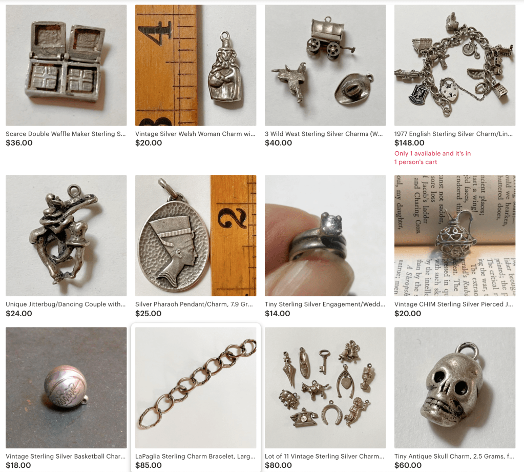 But these days I also enjoy selling charms and charm bracelets. I typically buy bracelets from other online sellers and then dismantle them and sell the charms individually. But sometimes I like the way a bracelet looks so much and the story the charms tell that I keep it together and sell it on. I don’t make as much profit that way but it’s lot less work too.