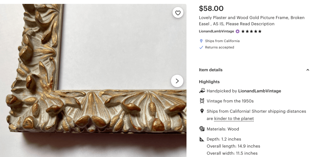 When I started my biz I never imagined I’d be selling picture frames, but they have done well for me. I chose a selection from my SOLD listings to share with you. These all represent typical frames I look for these days.