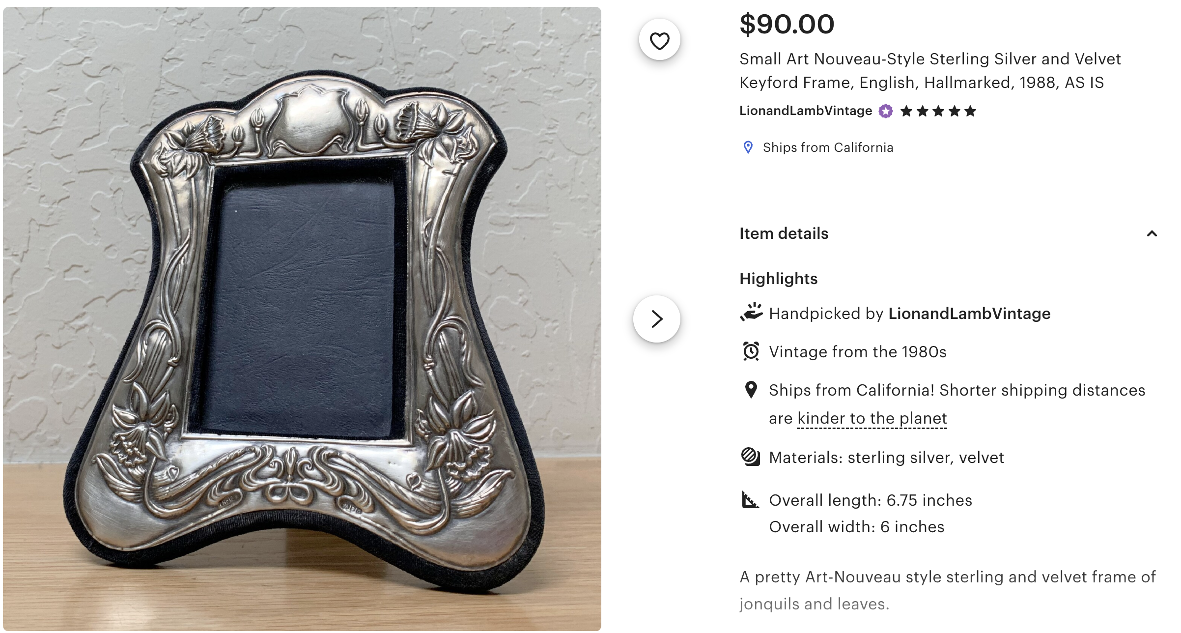 Sterling frames are hard to find in the wild though I have found a couple. This art nouveau-style frame is one I purchased on eBay. (Paid $40 in 2021.)