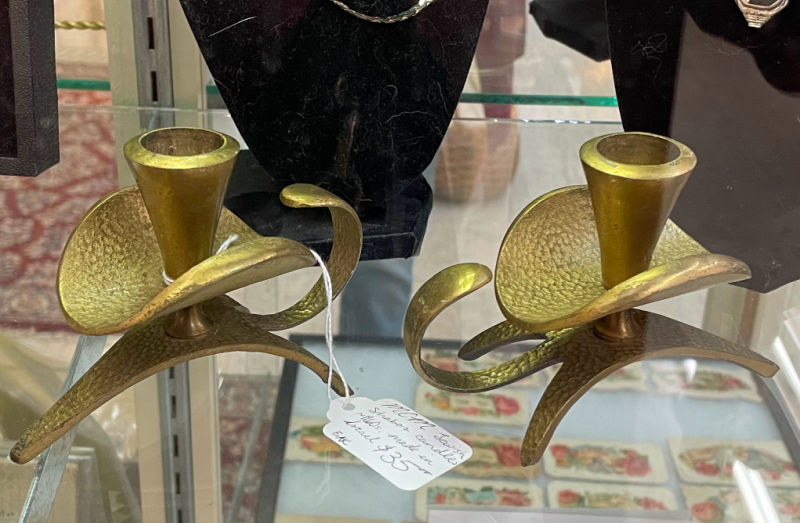 I loved these MCM brass Jewish shabbat candlesticks, but there were quite a few currently listed online and prices varied widely. At $35 for the pair, I didn’t see a profit for me.