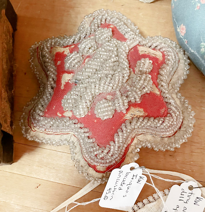 This antique beaded Iroquois whimsy at Corner Antiques also in Clinton caught my attention, but it had so much wear to the velvet that for $45 I just couldn’t spring for it. I must say though that Corner Antiques has some very impressive older unique pieces that I don’t normally see in an antique store that has multiple vendors. It was less of the vintage glass and china and more primitives. I appreciated that.