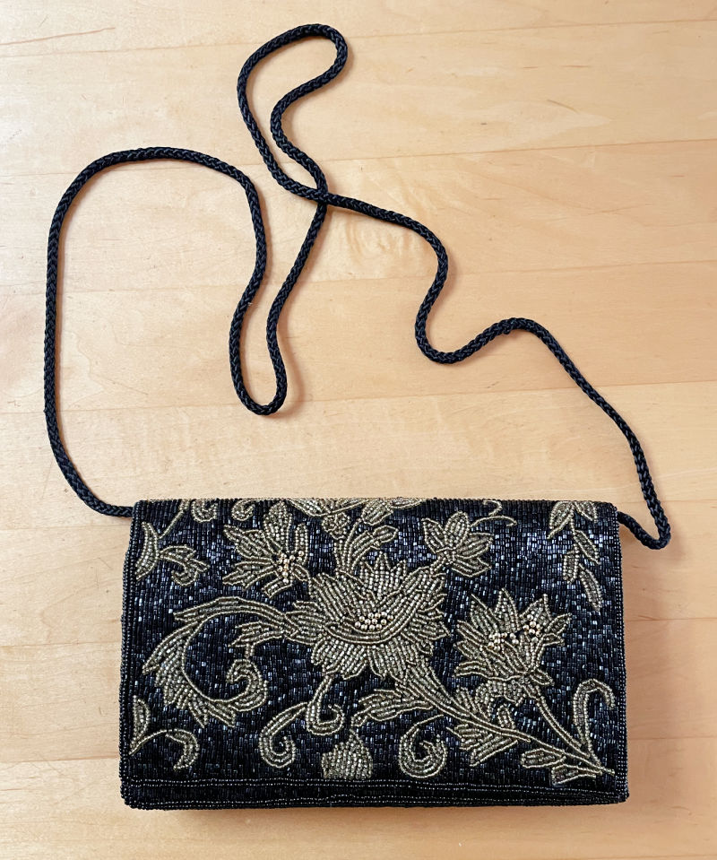 In the end I found another beaded purse–this time a Saks Fifth Avenue–in like-new condition and bought that. I wouldn’t have without the Saks name. No-name beaded purses usually aren’t worth the effort.