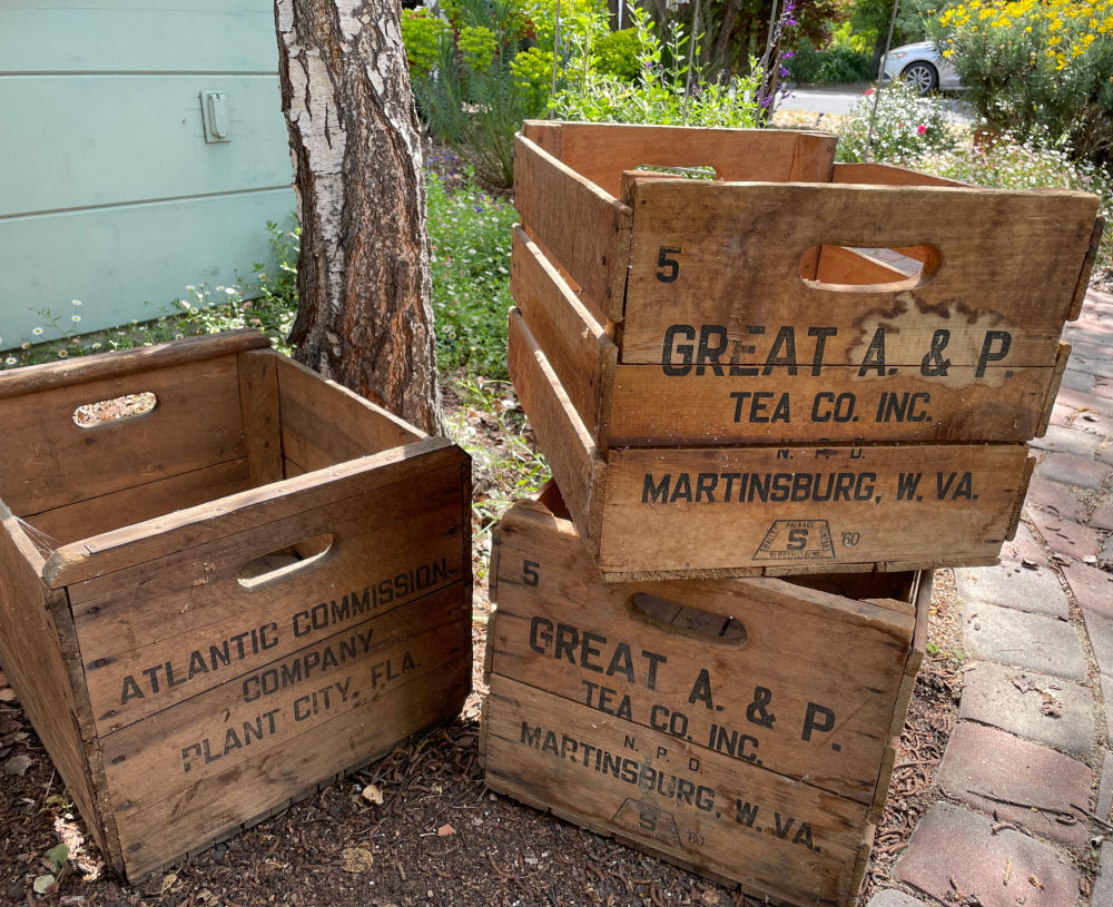 Then she discovered she had two more crates and she offered them to me too! Turns out they had come from her husband’s family who used them to gather apples on their farm back in Maryland. Love that bit of history!