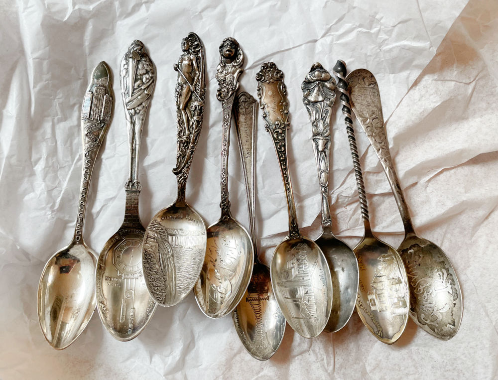 Also in the bin were some of my favorite antique sterling silver souvenir spoons. How could I have forgotten about these?