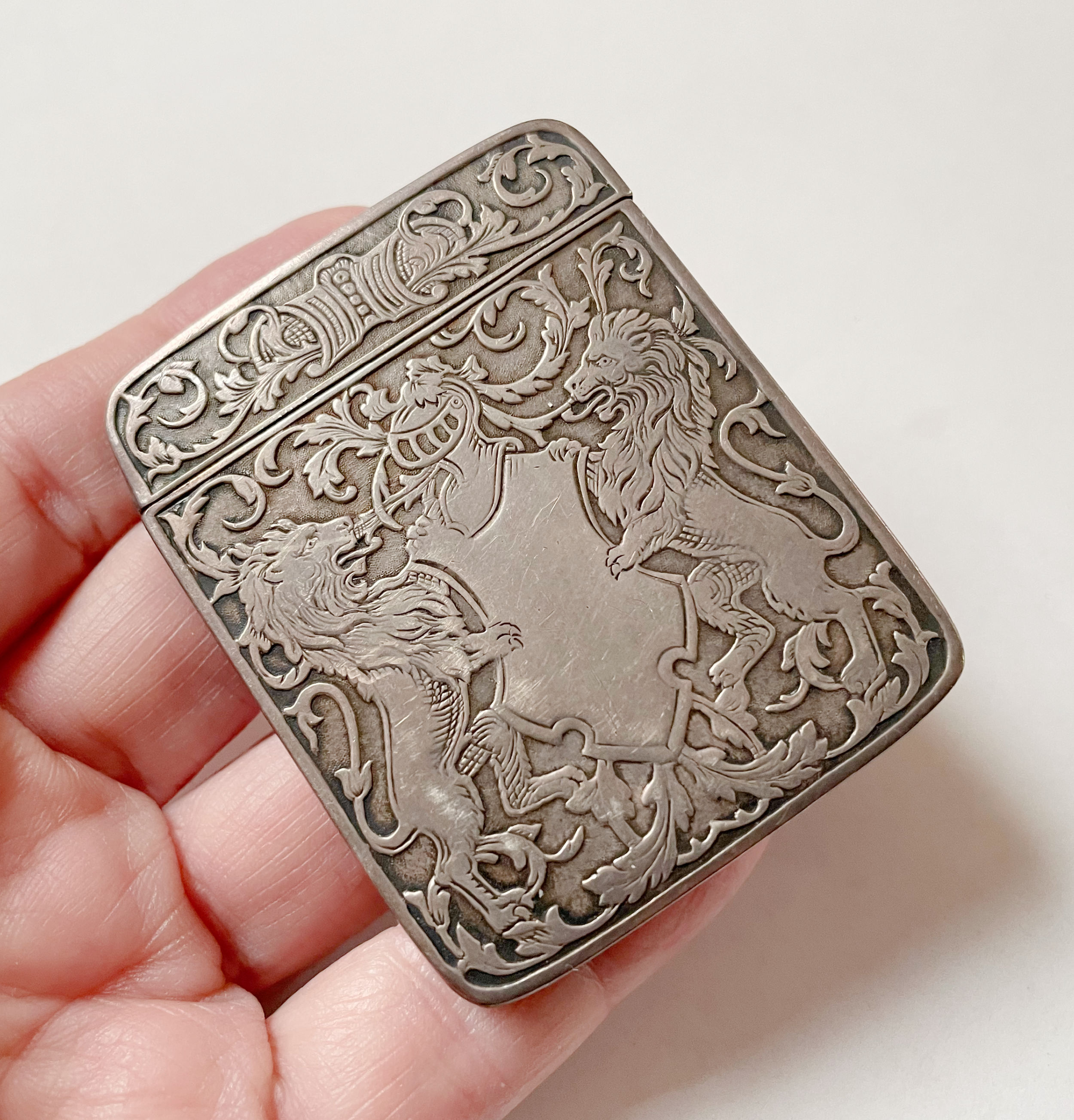 - Antique Sterling Silver Lion/Heraldry Vesta Match Case