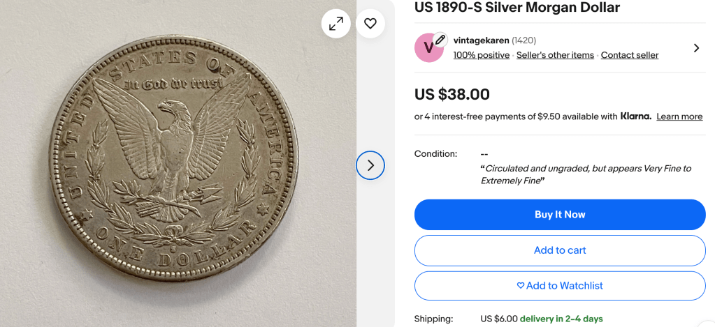 I found another site J.M. Buillon which provided a handy valuation table for each year and mint location. So helpful! And of course I looked at other sellers’ prices, pretty much all over the place.