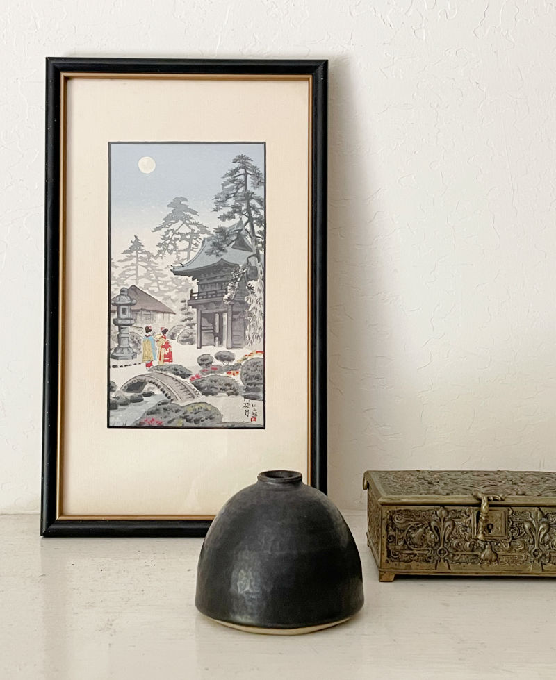 This small Japanese wood-block print called “Night Moon” (according to the translation) is my fav purchase of the morning. It is just enchanting and beautifully done. I haven’t been able to figure out the artist but it’s in the style of artist Nisaburo Ito and his pagodas and likely circa 1930 to 1960 though more research is needed. (Value: $70 to $90 if unknown artist)