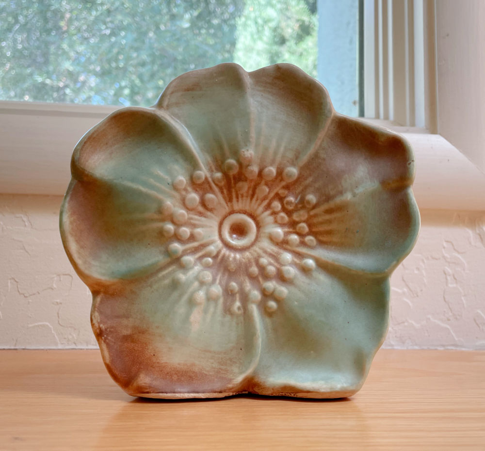 I generally steer clear of McCoy pottery because I don’t know much about it and there are a lot of fakes and repros, but I decided to give this McCoy pottery poppy wall pocket a chance. It’s unmarked, but that is not uncommon. I do think it’s charming, but not worth as much as I’d hoped. (Value: $25 to $40)