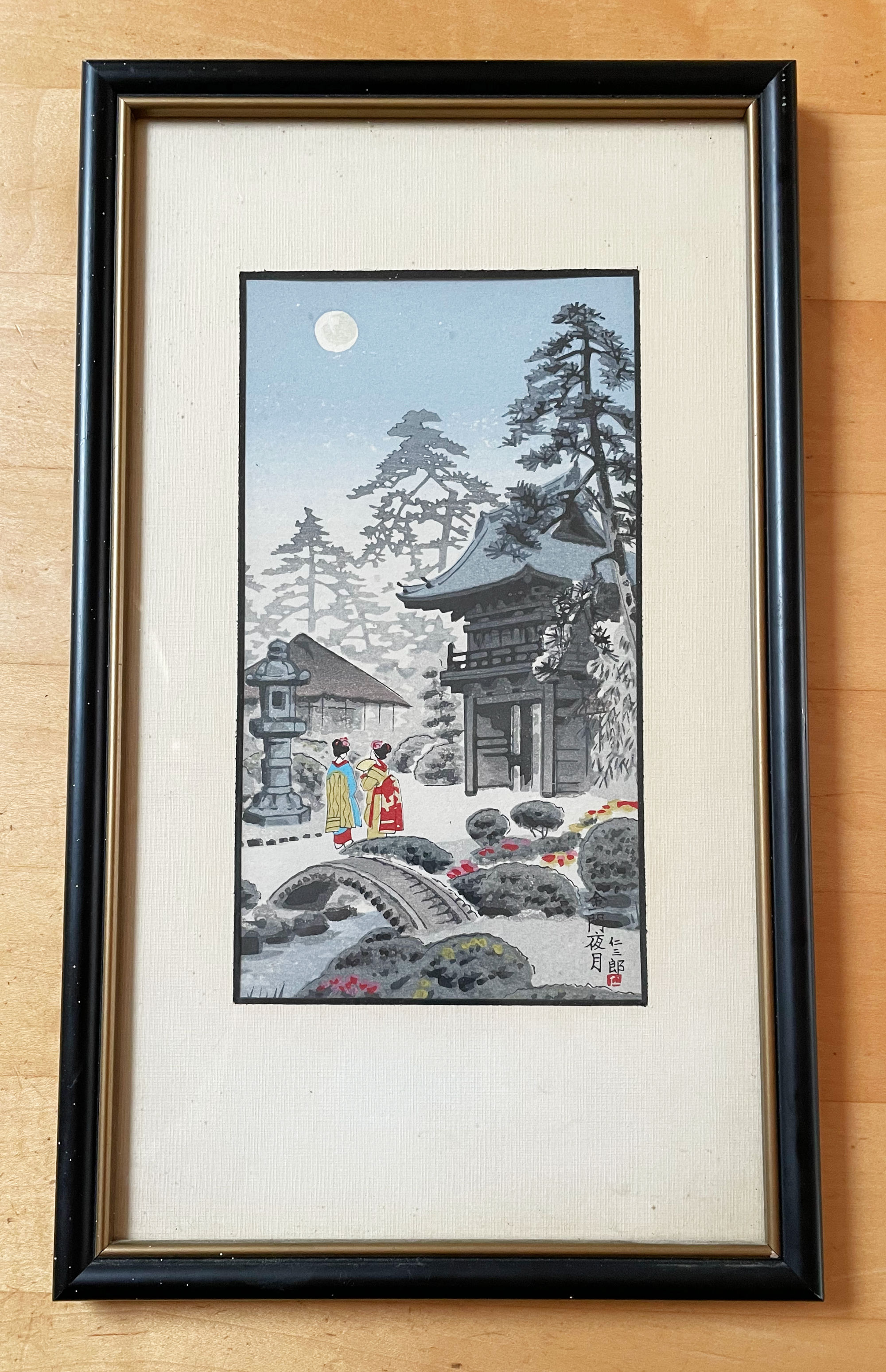 This small Japanese wood-block print called “Night Moon” (according to the translation) is my fav purchase of the morning. It is just enchanting and beautifully done. I haven’t been able to figure out the artist but it’s in the style of artist Nisaburo Ito and his pagodas and likely circa 1930 to 1960 though more research is needed. (Value: $70 to $90 if unknown artist)