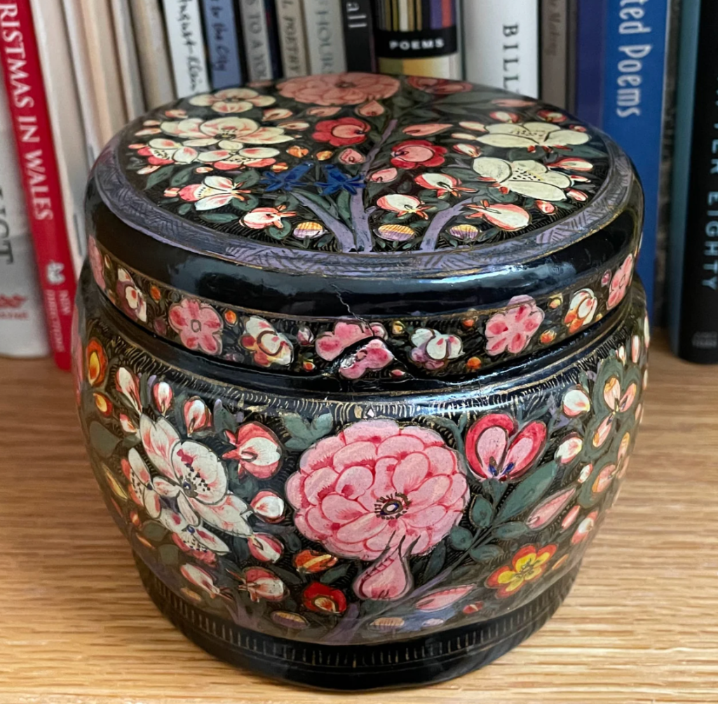 Vintage Kashmir Paper Mache Lacquer Box with Brass Lining