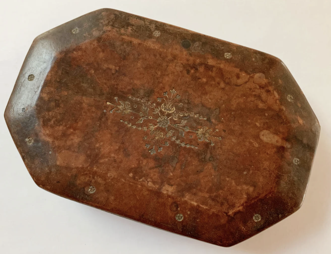 1800s Italian All-Leather Box with Gilded Elements, Wabi Sabi (SOLD $120)