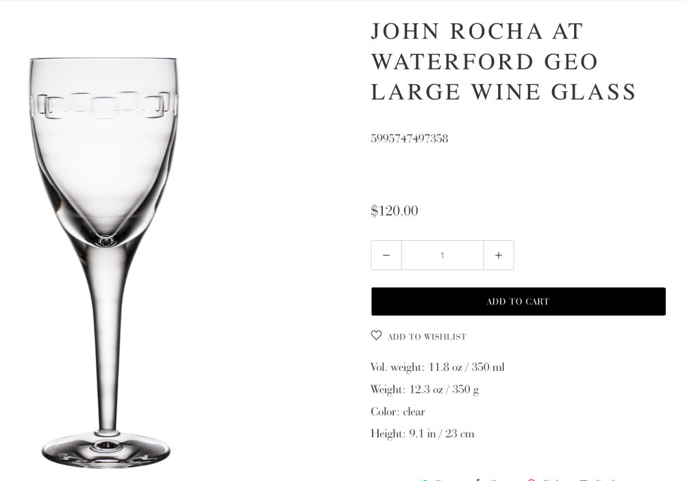 And I found one of the Voya wine glasses that sold at 75 UK pounds or approx. $100 US dollars. Other Voya pieces for sale include the champagne flutes and the old-fashioned glasses.