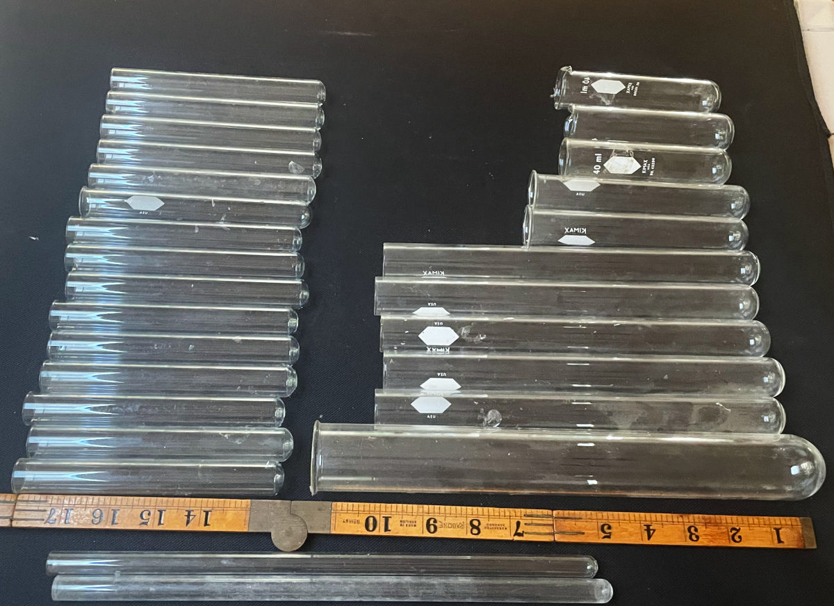 While working I also unearthed five more boxes of vintage lab glass!! Didn’t realize I had quite that much left. I pulled together this lot of 28 round-bottomed test tubes in varying sizes that I listed on FB Marketplace for $30. We’ll see if there is any interest.