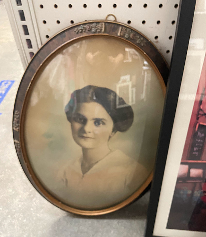 This antique frame was one to consider but in the end I left it behind. It was quite large (shipping would be a nightmare), not particularly exciting, and priced at $28+. Ouch. (Plus the photo creeped me out!)