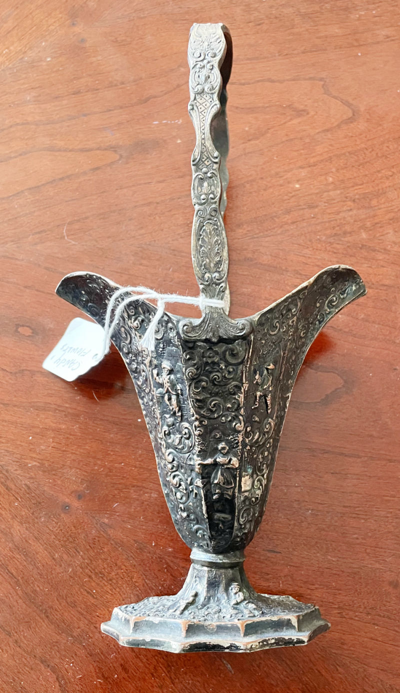 This antique bridal basket is silver-plate on copper by K & S. I am still researching the maker’s mark, though it’s possibly Kirk & Smith (1815-1820). Rather a charming thing that would be fun filled with candy.