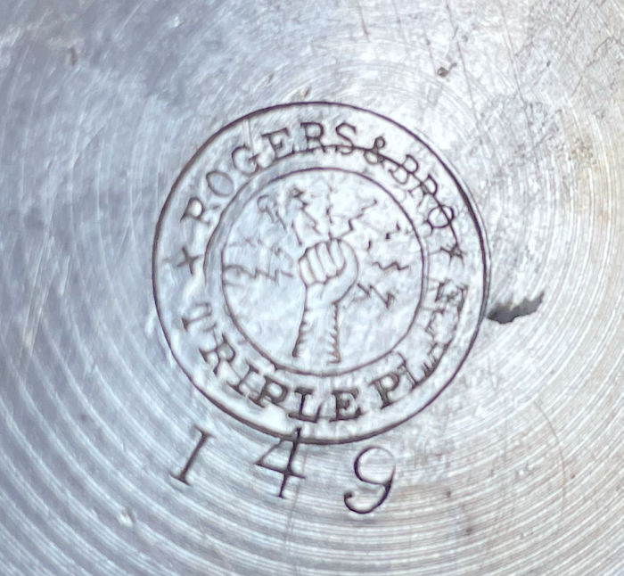 After the post office drop, it was a quick pop into my neighborhood thrift store. Since I hadn’t been there for a week I was hoping to see some good “new” stuff. And I did. This antique triple plate creamer/milk jug by Rogers & Bro. captured my attention right away. It was so sturdy and handsome.