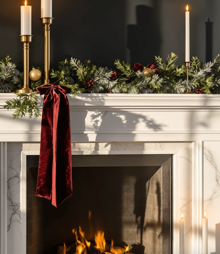 I like this elegant but simple mantel display by Edward George (edwardgeorgelondon.com) but I would remove the velvet ribbon. For some reason I find it distracting.
