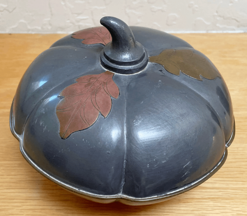 Earlier this year I bought this chunky vintage 5″ pewter pumpkin box because it was made in Hong Kong and had an intriguing maker’s mark. But honestly I didn’t like it and as I stood in the checkout line my brain said “Put the box down and walk out.” But before I knew it I was at the cashier paying $15 (!) for an ugly pewter box. It’s only been listed for six months, but I’m cutting it loose now. Sad to waste that money, but it was a good lesson to listen to my brain!!