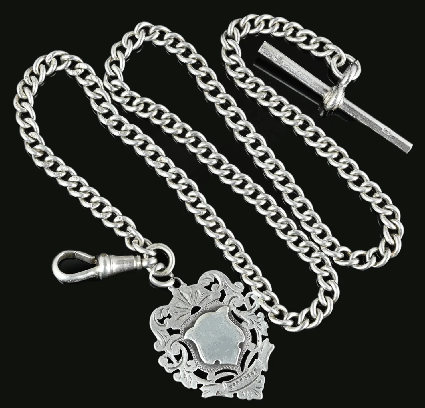 Here’s a lovely complete Albert watch chain on the Boylerpf website for $345.