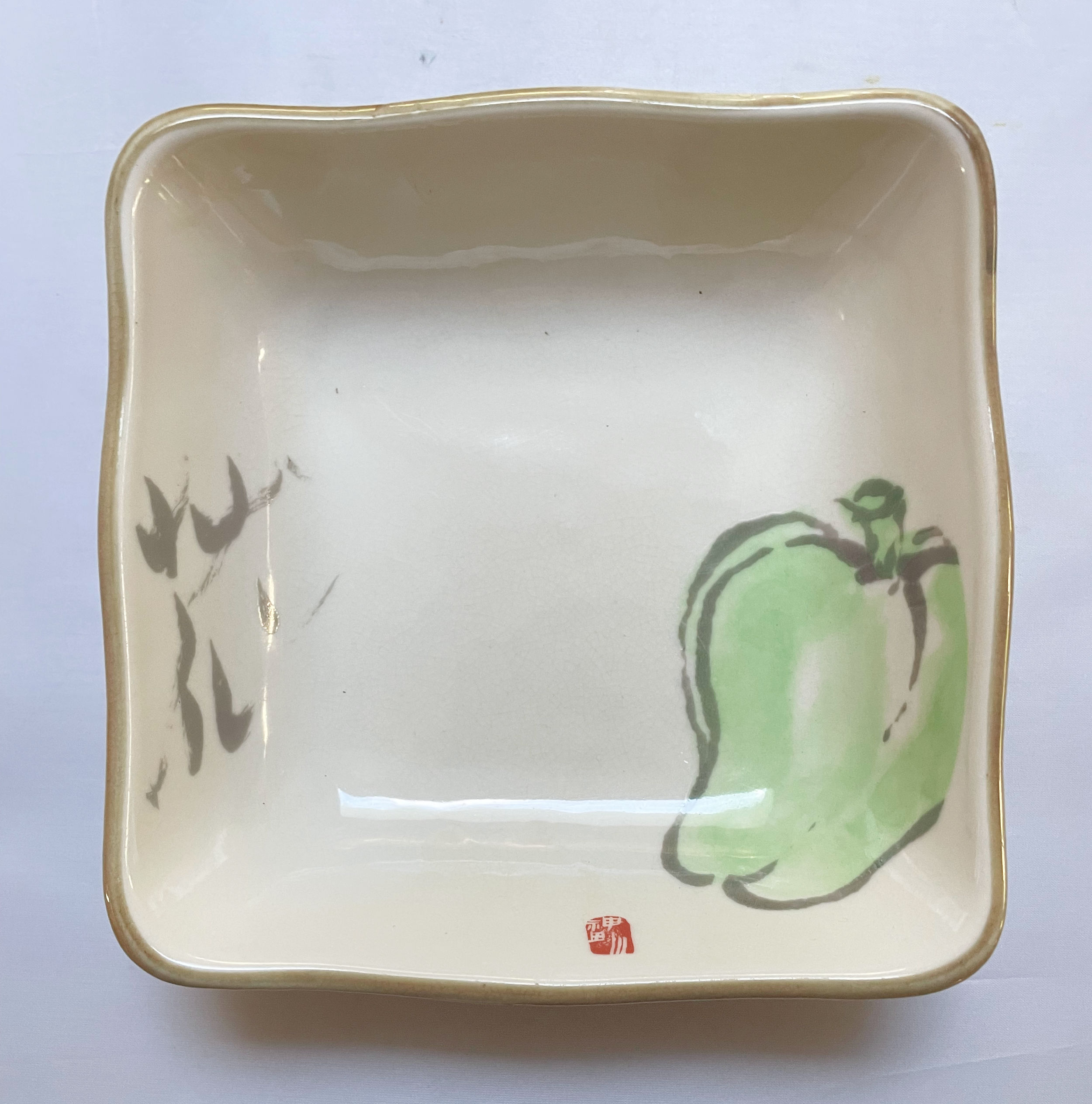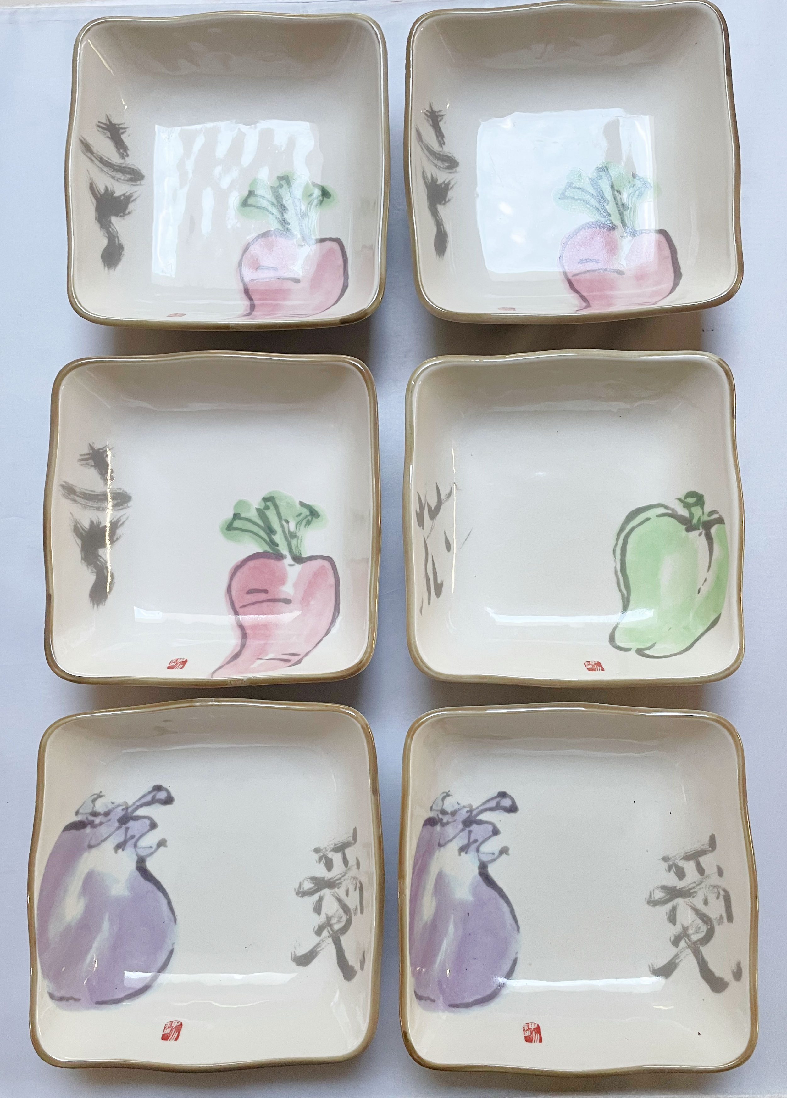Today a quick thrift store visit revealed these six Mino ware Japanese bowls. This type of thing is on my no-buy list, but I have the willpower of a gnat and couldn’t resist buying them. I’m guessing these would be used for rice or broth or maybe some tempura vegetables!
