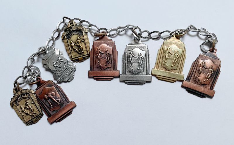In my unlisted pile I have this sterling silver bracelet loaded with 1950s/60s field and track medals bought last October for $19. I bought it for no other reason than I thought it made for an interesting piece of jewelry and unique peek into someone’s past. But how many folks are going to want to wear this other than me?! I’ve decided to remove the medals and sell them individually, though they won’t go for much.
