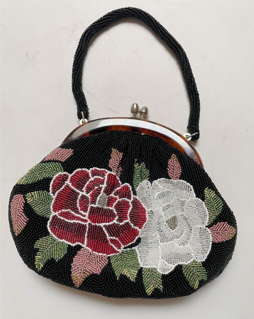 I am pleased with this hand-beaded cocktail purse found the other day at my neighborhood thrift store. No label or info of any kind, but it’s beautifully made, quite heavy with all the beads, very clean and looks unused. Even the beaded handle is just fine. And bonus it will fit a small cell phone. I did sell some beaded purses in 2025, but most had brand labels, like the Mary Frances designer purses, or at least country of origin. This one doesn’t. I will likely add a video of this purse to the listing as that will really showcase how fabulous it is!