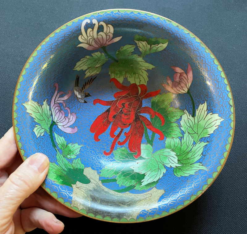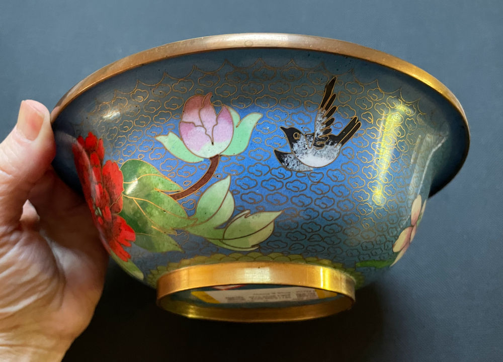 First I picked up this blue cloisonne bowl. It’s of no great age, but rather pretty with no damage. To be honest cloisonne has not been selling quickly for me these days (a vase I sold a few months ago took three years to sell!), but I still thought it was worth picking up. (Listed for $48.)