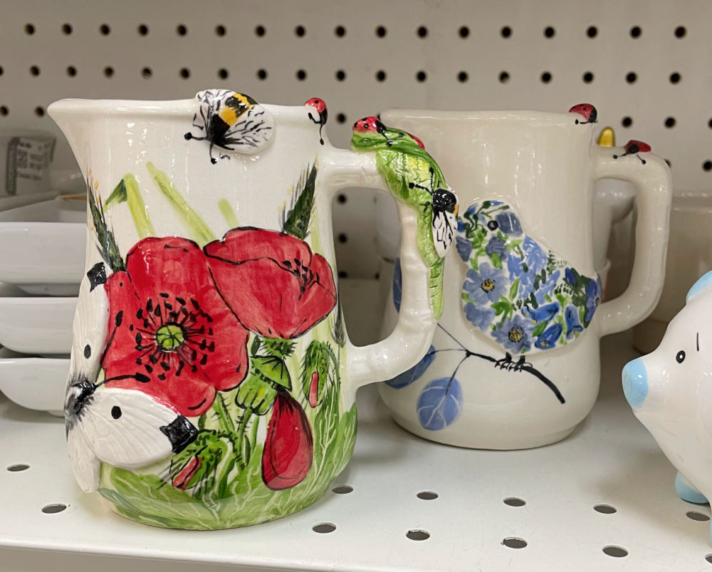 Left these creamers on the shelf! They were hand-painted and signed, but not what I want in my store these days. Too cutesy! Plus creamers do not sell for me. They were a big NO.