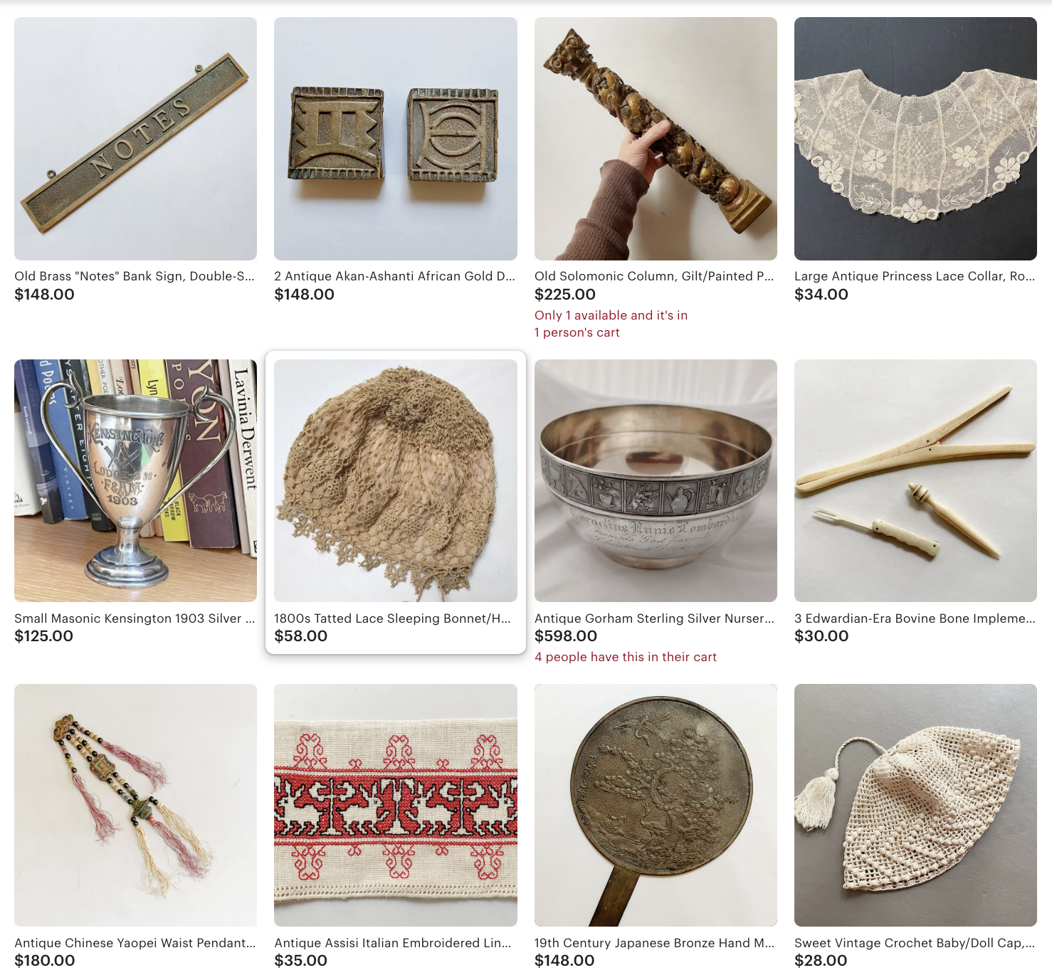 Even after 14 years of selling on Etsy, sales are not a given. I am literally thankful for each one. I know I’ve got “good stuff” but so do millions of other online sellers. Millions. Competition is fierce in the vintage/antique space. Of course most of us never meet our competitors except briefly at sourcing venues!