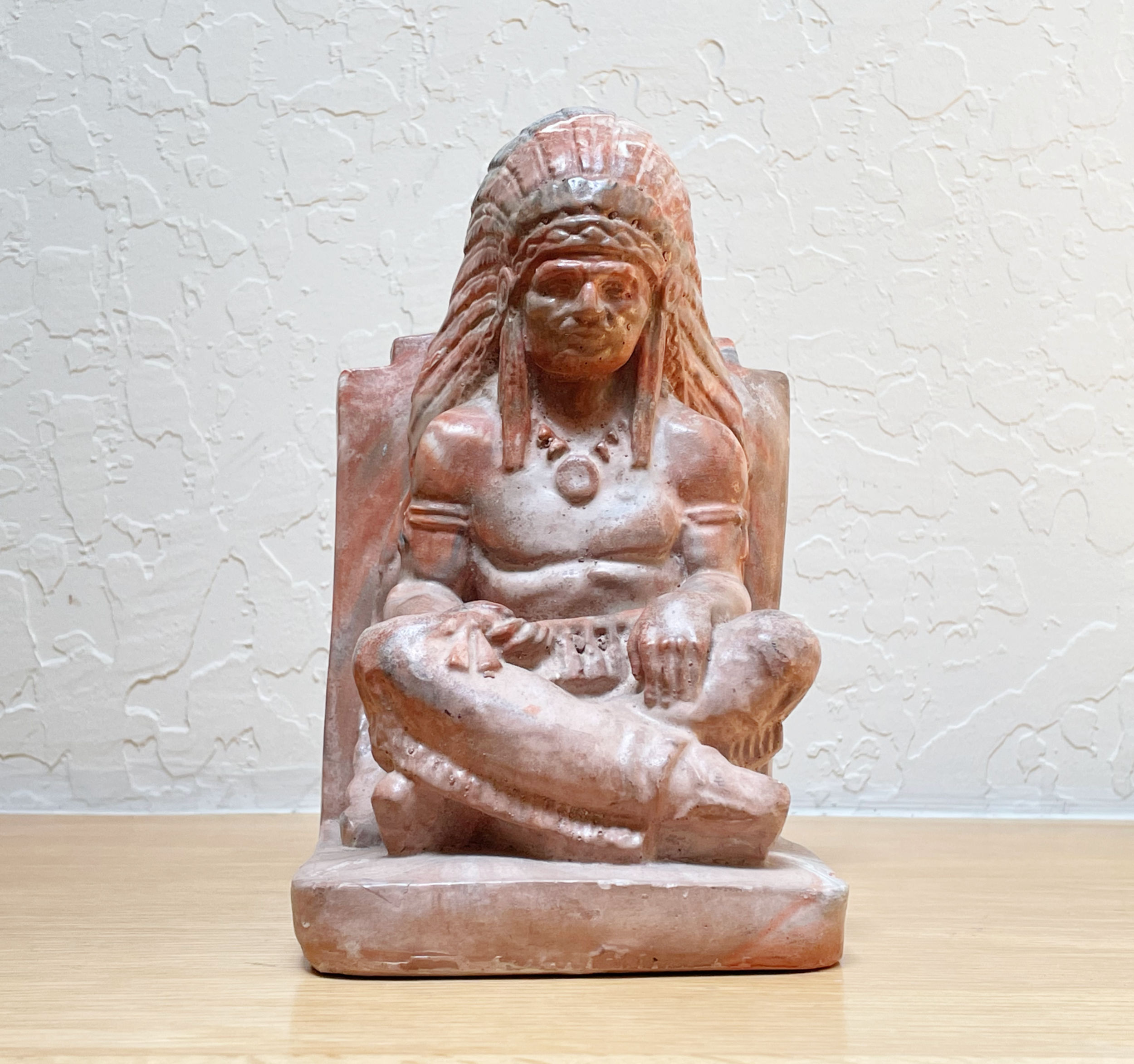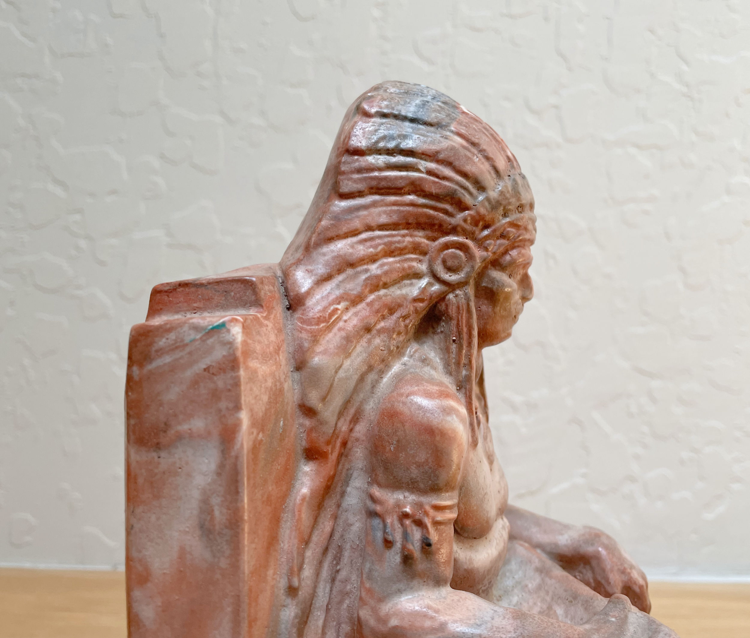 I’ve started writing a number of posts for this blog over this past week and either got bored writing them or thought you’d be bored reading them! My mojo has left the building. Some weeks are like this. Lately I’ve had USPS problems, lots of customer questions/offers, have not sourced much and just feel, well, a bit meh. Still I plodded along managing to list a bunch of new stuff and deal with orders and messages in a timely fashion. The only thing I’ve bought in days is this heavy slag chalkware bookend. He actually looks like polished marble in places. (He’s listed for $40.)